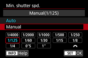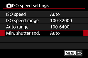 Izberite [Min. shutter spd./Najn. hitrost zaklopa].