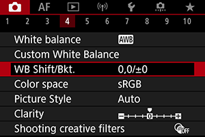 prekličete vse nastavitve [WB Shift/Bkt./Preklop/Zaporedje izravnave beline].