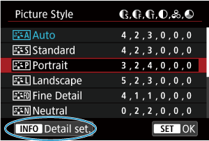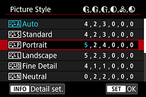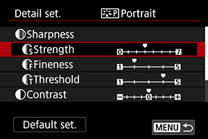 - Z izbiro [Default set./Privzeta nast.] v koraku 3 lahko vrnete nastavitve parametra ustreznega stila slike na privzete.