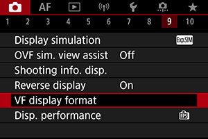 1. Izberite [Fotografiranje: VF display format/Fotografiranje: Format prikaza v iskalu].