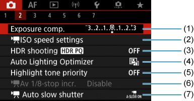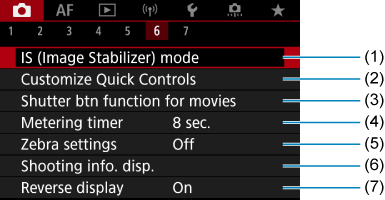 - (6) Shooting info. disp./Prikaz podatkov o snemanju