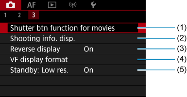 - (3) Shutter btn function for movie/Funkcija gumba zaklopa za filme