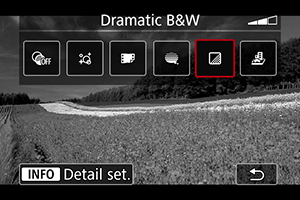 Ustvari ozračje dramatičnega realizma z zelo močnim črno-belim kontrastom. Prilagajate lahko raven zrnatosti in črno-beli kontrast.