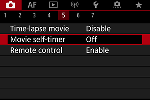 1. Izberite [Snemanje: Movie self-timer/Snemanje: Samosprožilec za film].