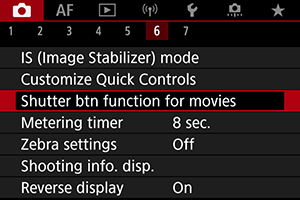 Če nastavite možnost [Fully-press/Pritisk do konca] na [Start/stop mov rec/Začetek/konec snemanja filma], lahko začnete/prenehate snemati film ne samo z gumbom za snemanje filma, temveč tudi s pritiskom gumba zaklopa do konca ali z uporabo daljinskega stikala RS-60E3 (v prodaji posebej).