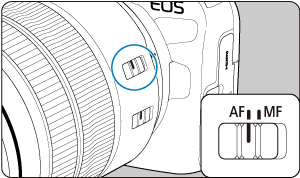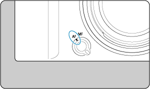 preklop (AF/MF)] nastavljena na [Enable/Omogoči] (), nastavite stikalo za način ostrenja na sprednji strani fotoaparata na
