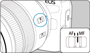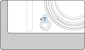 preklop (AF/MF)] nastavljena na [Enable/Omogoči] (), nastavite stikalo za način ostrenja na sprednji strani fotoaparata na