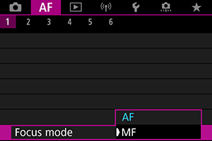 preklop (AF/MF)] nastavljena na [Disable/Onemogoči] (), nastavite [