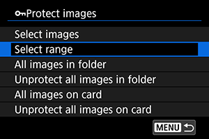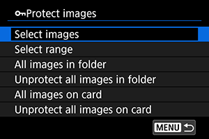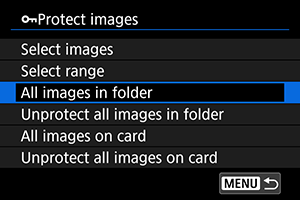 : Zaščita slik], bodo zaščitene vse slike v mapi ali na kartici.