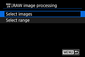 - Če uporabljate možnost [Set up processing→JPEG/Nastavitev obdelave→JPEG] ali možnost [Set up processing→HEIF/Nastavitev obdelave→HEIF], izberite [
