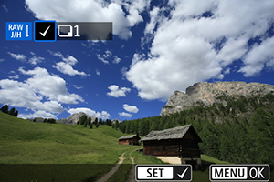 Slike JPEG ali HEIF pri izbranem aspektnem razmerju so ustvarjene, če obdelujete slike RAW, zajete s funkcijo [: Still img aspect ratio/