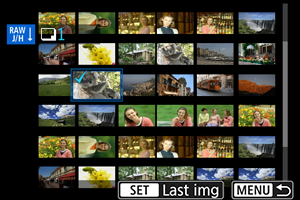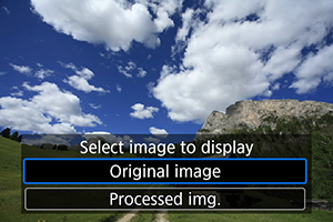 Slike, prikazane za [Set up processing→JPEG/Nastavitev obdelave→JPEG] ali [Set up processing→HEIF/Nastavitev obdelave→HEIF], lahko povečate s pritiskom na gumb . Razmerje povečave je različno in je odvisno od nastavitve [Image quality/Kakovost slike]. Z uporabo