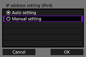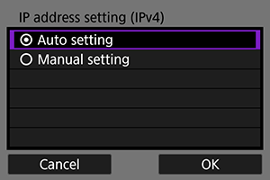 - Če se pri [Auto setting/Samodejna nastavitev] pojavi napaka, glejte Ročna nastavitev naslova IP.