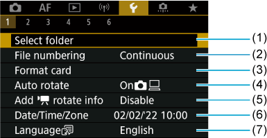 - (1) Screen/viewfinder display/Prikaz na zaslonu/v iskalu