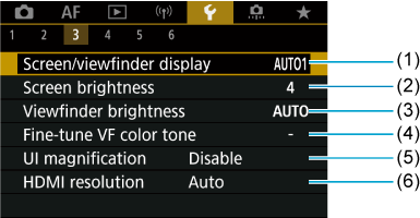 - (3) Viewfinder brightness/Svetlost iskala