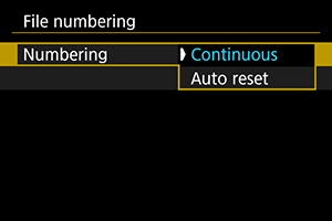 Če oštevilčenje datotek ponastavite ročno, se samodejno ustvari nova mapa in oštevilčenje posnetkov, shranjenih v to mapo, se začne z 0001.