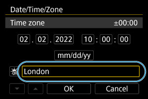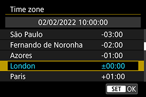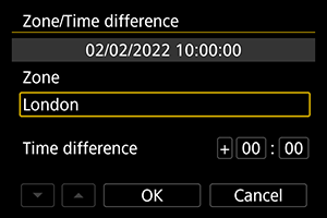 - Po vnosu časovnega pasu ali časovne razlike izberite [OK].
