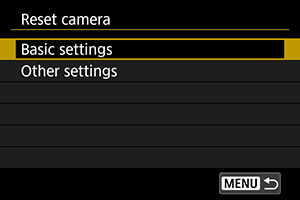 Nastavitve fotoaparata za funkcije fotografiranja in funkcije menija lahko vrnete na privzete nastavitve.