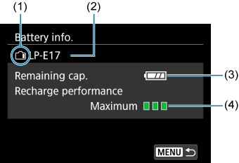 - Priporočena je uporaba originalne Canonove baterije LP-E17. Če uporabljate baterije, ki niso originalno Canonove, polna učinkovitost fotoaparata morda ne bo dosežena ali pa se bo pojavila napaka.