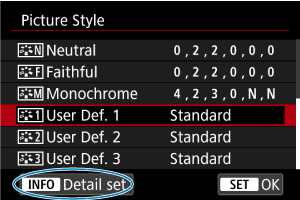 - Ko je izbrano [Picture Style/Stil slike], pritisnite