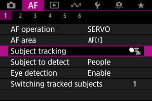 To poglavje opisuje postopke na območju za samodejno ostrenje (AF) z možnostjo [: Subject tracking/