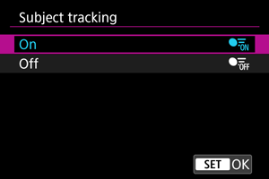 : Sledenje predmetu] nastavljeno na [Off/Izklop].
