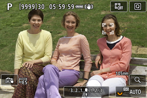 - Okvirji za sledenje so beli tudi izven točke AF, če je zaznan del predmeta v točki AF in del predmeta (na primer oči, obraz ali glava) leži znotraj razpona za Whole area AF/Celotno območje AF.