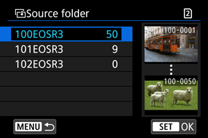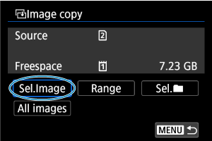 - Z nastavitvijo [Sel.Image/Izbira slike] ni mogoče istočasno kopirati slik v več mapah. Izberite slike za kopiranje iz po ene mape naenkrat.