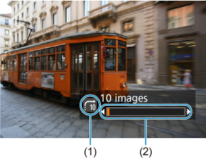 - Z izbrano funkcijo [Jump images by the specified number/Preskok skozi izbrano število slik] lahko z vrtenjem regulatorja