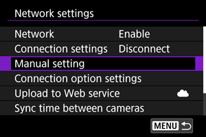 Izbira [Select from list/Izbira iz seznama] navede seznam nastavitev komuniciranja, shranjenih v fotoaparatu. Izberite nastavitve komuniciranja, ki jih želite uporabiti.