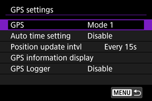 : GPS settings/