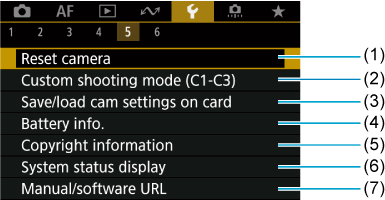 - (2) Custom shooting mode (C1-C3)/Uporabniški načini fotografiranja (C1-C3)