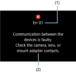 Ko se pojavi napaka v delovanju fotoaparata, se izpiše sporočilo o napaki. Upoštevajte na zaslonu prikazane napotke.