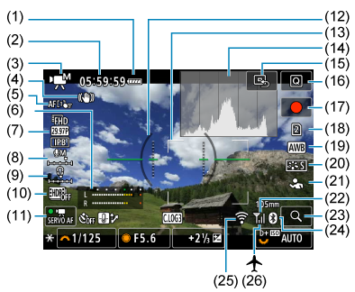 - (6)Indikator ravni snemanja zvoka (ročni vhod)