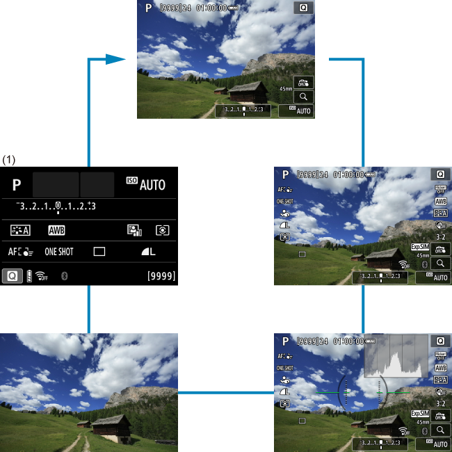 - S pritiskom na gumb zaklopa do polovice se lahko vrnete v pripravljenost za fotografiranje, četudi je prikazan meni ali poteka predvajanje slike.