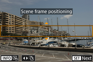 - Če želite, da se okvir za prizor premika (prikazan v oranžni barvi), pritisnite gumb
