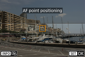 Možnost [AF area/Območje AF] je nastavljena na [1-point AF/1-točkovno AF]. Priporočamo fotografiranje s poravnanima točko AF in okvirjem s prizorom.