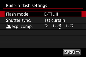 Funkcije vgrajene bliskavice ali zunanje bliskavice Speedlite EL/EX lahko nastavite prek zaslonov z meniji na fotoaparatu.