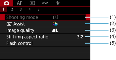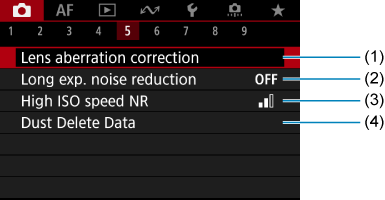 - (1) Expo.comp./AEB/Popravek osvetlitve/AEB