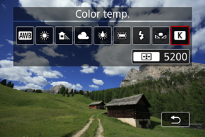 ] na vrednost, izmerjeno z merilnikom barvne temperature, na voljo v trgovinah, zajemite vnaprej nekaj preizkusnih posnetkov in po potrebi prilagodite nastavitev, da popravite morebitno razliko med izmerjeno vrednostjo z merilnikom barvne temperature in fotoaparatom.
