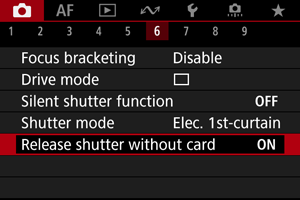 Fotoaparat lahko nastavite, tako da ne zajame fotografije, če v njem ni vstavljene kartice. Privzeta nastavitev je [Enable/Omogoči].