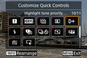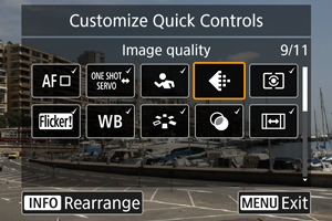 - Postavke, ki so prikazane na zaslonu hitrega krmilnika, so označene s kljukico. Postavke brez kontrolnega znaka (kljukice) bodo odstranjene.