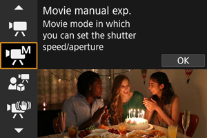 Izberite [Movie manual exp./Ročna osvetlitev filma].