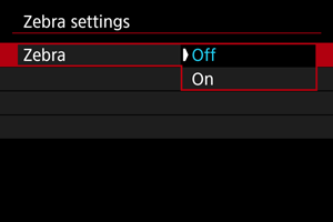 - Če nameravate nastaviti [Zebra pattern/Zebrasti vzorec], priporočamo vnaprejšnje preverjanje ravni prikaza zebrastega vzorca.