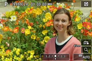 - Položaj območij za AF in točk, ko se sledenje zaustavi med pripravljenostjo na fotografiranje, ustreza položaju pred začetkom sledenja.