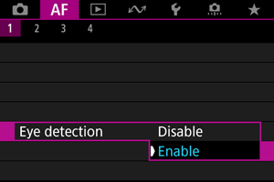 glede na nastavitev [Eye detection/Zaznavanje oči].