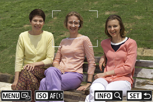 - Za izbiro obraza za izostritev, ko je možno zaznati več obrazov, pritisnite gumb