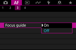 : Vodilo pri ostrenju] na [On/Vklop] vključi vodilo z okvirjem, ki kaže, v katero smer prilagodite ostrino in zahtevano raven prilagoditve.