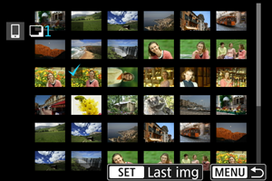 - Pametni telefoni, ki so trenutno povezani s fotoaparatom, so označeni z ikono [