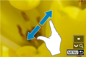 Fotoaparat je opremljen z zaslonom z upravljanjem na dotik, na katerem lahko z dotikanjem upravljate predvajanje. Podprti postopki upravljanja so podobni postopkom na pametnih telefonih in sličnih napravah. Najprej pritisnite gumb , da pripravite fotoaparat na predvajanje z dotikanjem.